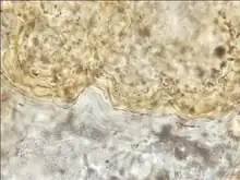Laminated layer of a cyst found in a corpse in a grave from the late Roman period in France, interpreted[34] as a probable hydatidosis cyst