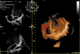 Three-dimensional echocardiography (also known as four-dimensional echocardiography when the picture is moving) is now possible, using a matrix array ultrasound probe and an appropriate processing system. This enables detailed anatomical assessment of cardiac pathology, particularly valvular defects,[11] and cardiomyopathies.[12] The ability to slice the virtual heart in infinite planes in an anatomically appropriate manner and to reconstruct three-dimensional images of anatomic structures make it unique for the understanding of the congenitally malformed heart.[13] Real-time three-dimensional echocardiography can be used to guide the location of bioptomes during right ventricular endomyocardial biopsies, placement of catheter-delivered valvular devices, and in many other intraoperative assessments.[14]