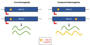- ↑ kelsell, David (May 2005). "Mutations in ABCA12 Underlie the Severe Congenital Skin Disease Harlequin Ichthyosis". Am J Hum Genet. 76 (5): 794–803. doi:10.1086/429844. PMC 1199369. PMID 15756637.