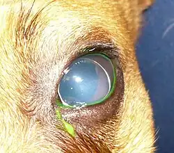 - ↑ Johnsen D, Maggs D, Kass P (2006). "Evaluation of risk factors for development of secondary glaucoma in dogs: 156 cases (1999-2004)". Journal of the American Veterinary Medical Association. 229 (8): 1270–4. doi:10.2460/javma.229.8.1270. PMID 17042730.