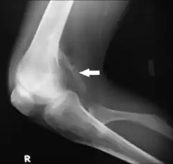 - ↑ King, J. B. (1998). "Post-traumatic ectopic calcification in the muscles of athletes: a review" (PDF). British Journal of Sports Medicine. 32 (4): 287–290. doi:10.1136/bjsm.32.4.287. PMC 1756114. PMID 9865397. Retrieved 2012-06-18.
