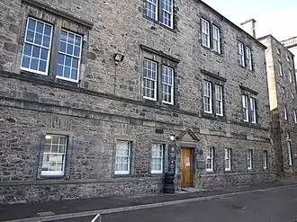 Brown Square was built as a residential development in 1763 and demolished in the late nineteenth century.[19] The Brown Square School of Medicine was established by James Syme, later Professor of Surgery in the university. Syme taught anatomy and surgery and was joined in the school by John Macintosh who taught medicine and midwifery and John Argyll Robertson who taught materia medica. When Syme resigned from the school his anatomy class was continued by Alexander Jardine Lizars, later professor of anatomy in the University of Aberdeen. The school closed in 1836 when the teaching was transferred to 11 Argyle Square.[3]
