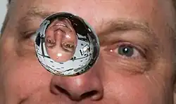 In 2013 NASA published a study that found changes to the eyes and eyesight of monkeys with spaceflights longer than 6 months.[85] Noted changes included a flattening of the eyeball and changes to the retina.[85] Space travelers' eyesight can become blurry after too much time in space.[86][87] Another effect is known as cosmic ray visual phenomena.