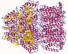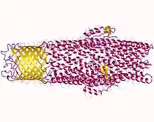 - ↑ Du D, Wang Z, James NR, Voss JE, Klimont E, Ohene-Agyei T, Venter H, Chiu W, Luisi BF (May 2014). "Structure of the AcrAB-TolC multidrug efflux pump". Nature. 509 (7501): 512–5. Bibcode:2014Natur.509..512D. doi:10.1038/nature13205. PMC 4361902. PMID 24747401.