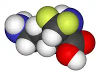 - ↑ 34.0 34.1 34.2 Poulin, R; Lu, L; Ackermann, B; Bey, P; Pegg, AE (Jan 5, 1992). "Mechanism of the irreversible inactivation of mouse ornithine decarboxylase by α-difluoromethylornithine. Characterization of sequences at the inhibitor and coenzyme binding sites". The Journal of Biological Chemistry. 267 (1): 150–8. PMID 1730582.