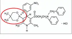 Efonidipine (INN) is a dihydropyridine calcium channel blocker marketed by Shionogi & Co. of Japan. It was launched in 1995, under the brand name Landel (ランデル). The drug blocks both T-type and L-type calcium channels.[1] Drug Controller General of India (DCGI) has approved the use of efonidipine in India.[2] It is launched under the brand name "Efnocar" (Zuventus Health care ltd, India).