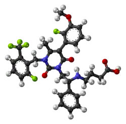 - ↑ Tucci FC, Zhu YF, Struthers RS, Guo Z, Gross TD, Rowbottom MW, Acevedo O, Gao Y, Saunders J, Xie Q, Reinhart GJ, Liu XJ, Ling N, Bonneville AK, Chen T, Bozigian H, Chen C (February 2005). "3-[(2R)-Amino-2-phenylethyl]-1-(2,6-difluorobenzyl)-5-(2-fluoro-3-methoxyphenyl)- 6-methylpyrimidin-2,4-dione (NBI 42902) as a potent and orally active antagonist of the human gonadotropin-releasing hormone receptor. Design, synthesis, and in vitro and in vivo characterization". J. Med. Chem. 48 (4): 1169–78. doi:10.1021/jm049218c. PMID 15715483.