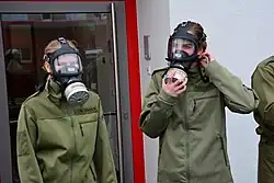 - ↑ Janssen L, Johnson AT, Johnson JS, Mansdorf SZ, Medici OR, Metzler RW, Rehak TR, Szalajda JV (29 August 2019). Chemical, Biological, Radiological, and Nuclear (CBRN) Respiratory Protection Handbook (PDF). Pittsburgh, PA: CDC: National Institute for Occupational Safety and Health. p. 229. doi:10.26616/NIOSHPUB2018166. Publication No. 2018-166. Retrieved 12 August 2020.