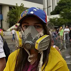 During demonstrations and protests where tear gas (such as CS gas[71]) is employed by riot police, gas masks are commonly used by police[72] and demonstrators alike.[73][74][75] Journalists covering these events also use respirators, and where use of tear gas spreads into residential areas, even those not on the front lines may buy them. Access to respirators has been restricted by authorities who regard them as tools of resistance, causing circumvention and smuggling.[73]
