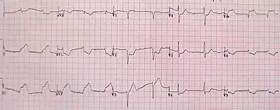 - ↑ Brady WJ, Perron AD, Martin ML, Beagle C, Aufderheide TP (January 2001). "Cause of ST segment abnormality in ED chest pain patients". Am J Emerg Med. 19 (1): 25–8. doi:10.1053/ajem.2001.18029. PMID 11146012.