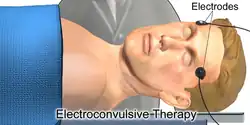 Electroconvulsive therapy (ECT) is a psychiatric treatment that causes a generalized seizure by passing electrical current through the brain.[2] ECT is often used as an intervention for mental disorders when other treatments are inadequate. Conditions responsive to ECT include major depressive disorder, mania, and catatonia.[3]