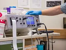 ECT soon replaced metrazol therapy all over the world because it was cheaper, less frightening and more convenient.[20] Cerletti and Bini were nominated for a Nobel Prize but did not receive one. By 1940, the procedure was introduced to both England and the US. In Germany and Austria, it was promoted by Friedrich Meggendorfer. Through the 1940s and 1950s, the use of ECT became widespread. At the time the ECT device was patented and commercialized abroad, the two Italian inventors had competitive tensions that damaged their relationship.[21] In the 1960s, despite a climate of condemnation, the original Cerletti-Bini ECT apparatus prototype was contended by scientific museums between Italy and the US.[22] The ECT apparatus prototype is now owned and displayed by the Sapienza Museum of the History of Medicine in Rome.[22]