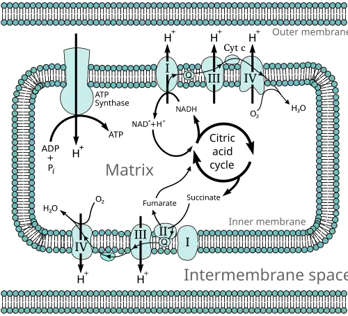 - ↑ Jonckheere AI, Smeitink JA, Rodenburg RJ (March 2012). "Mitochondrial ATP synthase: architecture, function and pathology". Journal of Inherited Metabolic Disease. 35 (2): 211–25. doi:10.1007/s10545-011-9382-9. PMC 3278611. PMID 21874297.