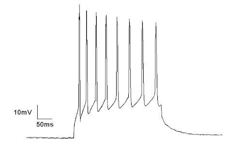 "Current Clamp" is a common technique in electrophysiology. This is a whole-cell current clamp recording of a neuron firing due to its being depolarized by current injection