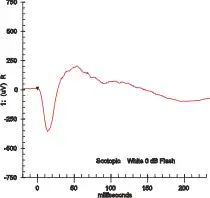 ![]() Maximal response ERG waveform from a dark adapted eye. | |