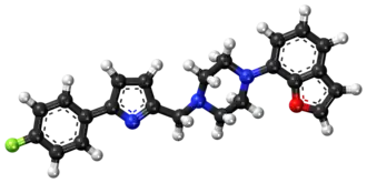 • Fc1ccc(cc1)c2ccc([nH]2)CN5CCN(c4cccc3c4occ3)CC5