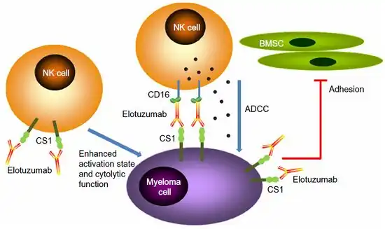 - ↑ Liu, Yi-Chang; Szmania, Susann; Rhee, Frits van (3 June 2014). "Profile of elotuzumab and its potential in the treatment of multiple myeloma". Blood and Lymphatic Cancer: Targets and Therapy. 4: 15–27. doi:10.2147/BLCTT.S49780.