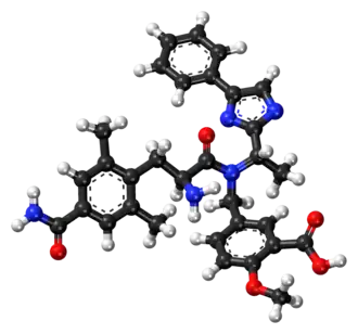- ↑ Davenport JM, Covington P, Bonifacio L, McIntyre G, Venitz J (May 2015). "Effect of uptake transporters OAT3 and OATP1B1 and efflux transporter MRP2 on the pharmacokinetics of eluxadoline". Journal of Clinical Pharmacology. 55 (5): 534–42. doi:10.1002/jcph.442. PMC 4402028. PMID 25491493.