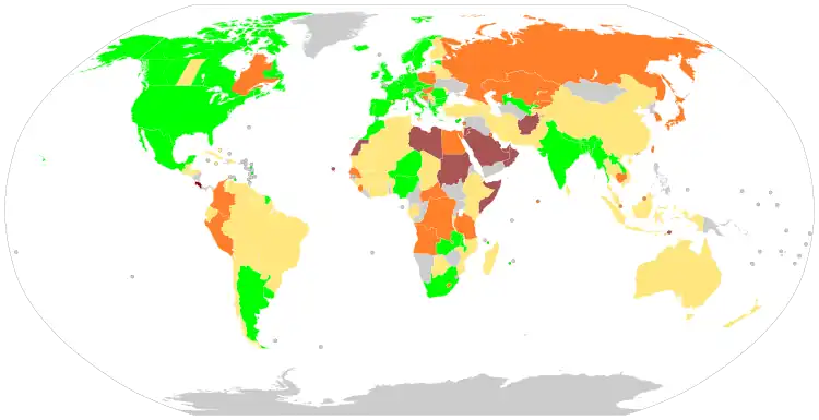 | Brazil | South America | None | Free at most public hospitals, R$35 otherwise | [34][35] | ||||