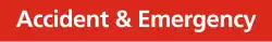 Regardless of naming convention, there is a widespread usage of directional signage in white text on a red background across the world, which indicates the location of the emergency department, or a hospital with such facilities.