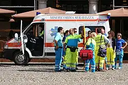 The International Red Cross and Red Crescent Movement is the largest charity in the world that provides emergency medicine.[31] (in some countries, it operates as a private ambulance service). Other organisations include St John Ambulance,[31] the Order of Malta Ambulance Corps and Hatzalah,[32] as well as small local volunteer agencies. In the United States, volunteer ambulances are rarer, but can still be seen in both metropolitan and rural areas (e.g. Hatzalah).