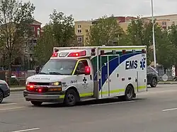 Alberta Health Services EMS Truck 3161. Most Ambulances in Canada use a GMC / Chevrolet cutaway van as their base.