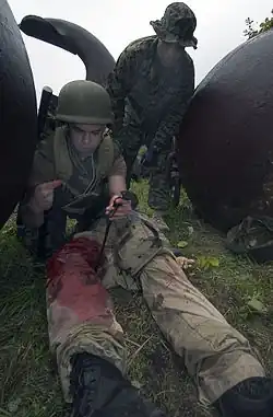 - ↑ Hill, JP; Montgomery, LD; Hopper, KW; Roy, LA (2007). "Evaluation of Self-Applied Tourniquets for Combat Applications, Second Phase". US Navy Experimental Diving Unit Technical Report. NEDU-TR-07-07. Archived from the original on 2009-09-21. Retrieved 2008-07-22.