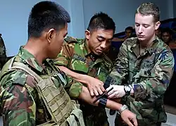 - ↑ Taylor DM, Vater GM, Parker PJ (September 2011). "An evaluation of two tourniquet systems for the control of prehospital lower limb hemorrhage". The Journal of Trauma. 71 (3). Lippincott Williams & Wilkins: 591–595. doi:10.1097/TA.0b013e31820e0e41. PMID 21768905.