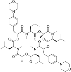 - ↑ Harder A, Schmitt-Wrede HP, Krücken J, Marinovski P, Wunderlich F, Willson J, et al. (September 2003). "Cyclooctadepsipeptides--an anthelmintically active class of compounds exhibiting a novel mode of action". International Journal of Antimicrobial Agents. 22 (3): 318–331. doi:10.1016/S0924-8579(03)00219-X. PMID 13678839.