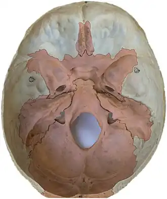 The endocranium in comparative anatomy is a part of the skull base in vertebrates and it represents the basal, inner part of the cranium. The term is also applied to the outer layer of the dura mater in human anatomy.[1]