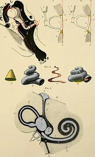 - ↑ Schuknecht HF. Pathology of the Ear. Philadelphia, Pa: Lea & Febiger; 1993:45–47, 50–51, 62, 64, 101