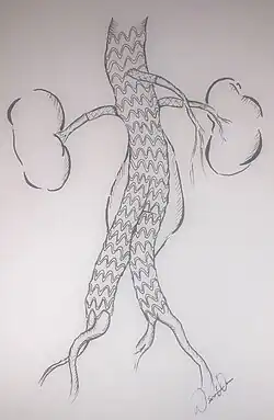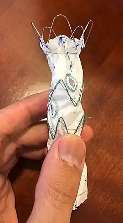 An approach that directly augments the fixation and sealing between the graft and aorta to mimic the stability of a surgical anastomosis is EndoAnchoring.[37][38] EndoAnchors are small, helically shaped implants that directly lock the graft to the aortic wall with the goal to prevent complications of the seal, especially in adverse neck anatomies.[39][40] These EndoAnchors may also be used to treat identified leaks between the graft and proximal neck.[41][42][43]