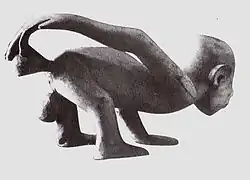 In parts of Africa, the calabash gourd is used traditionally to administer enemas. On the Ivory Coast the narrow neck of the gourd filled with water is inserted the patient's rectum and the contents are then injected by means of an attendant's forcible oral inflation, or a patient may self-administer the enema by using suction to create a negative pressure in the gourd, placing a finger at the opening, and then upon anal insertion, removing the finger to allow atmospheric pressure to effect the flow. In South Africa, Bhaca people used an ox horn to administer enemas.[77] Along the upper Congo River an enema apparatus is made by making a hole in one end of the gourd for filling it, and using a resin to attach a hollow cane to the gourd's neck. The cane is inserted into the anus of the patient who is in a posture that allows gravity to effect infusion of the fluid.[78]
