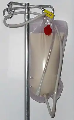 - A patient unable to be fed otherwise can be nourished by an enteral administration of predigested foods, which is known as a nutrient enema.[60] This treatment is ancient, dating back at least to the second century CE when documented by Galen,[61] and commonly used in the Middle Ages,[62] remaining a common technique in 19th century,[63] and as recently as 1941 the U. S. military's manual for hospital diets prescribes their use.[64] Nutrient enemas have been superseded in modern medical care by tube feeding and intravenous feeding.