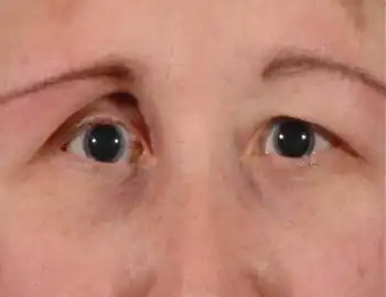 Enophthalmos is the posterior displacement of the eyeball within the orbit due to changes in the volume of the orbit (bone) relative to its contents (the eyeball and orbital fat), or loss of function of the orbitalis muscle.[1] It should not be confused with its opposite, exophthalmos, which is the anterior displacement of the eye.