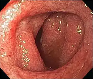 Eosinophilic enteropathy – a condition where eosinophils build up in the gastrointestinal tract and blood vessels, leading to polyp formation, necrosis, inflammation and ulcers.[20] It is most commonly seen in patients with a history of atopy, however is overall relatively uncommon.[21]