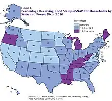 - ↑ Coleman-Jensen, A; Nord, M; Singh, A (2013). "Household Food Security in the United States in 2012". U.S. Department of Agriculture.