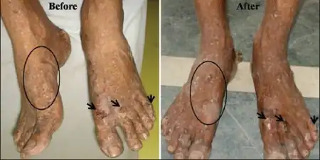 | Complications | Disfigurement, squamous cell skin cancer[1] |
