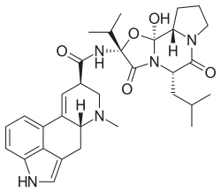 - ↑ Schlientz W, Brunner R, Ruegger A, Berde B, Stuermer E, Hofmann A (1968). "Ergot alkaloids. LXVII. β-Ergocryptine, a new alkaloid of the ergotoxin series". Pharmaceutica Acta Helvetiae. 43 (8): 497–509.
