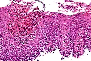 Lymphocytic esophagitis is a rare and poorly understood entity associated with an increased amount of lymphocytes in the lining of the esophagus.[1] It was first described in 2006. Disease associations may include Crohn's disease, gastroesophageal reflux disease and coeliac disease. It causes similar changes on endoscopy as eosinophilic esophagitis including esophageal rings, narrow-lumen esophagus, and linear furrows.