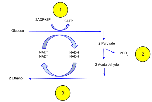 Ethanol fermentation is the basis for alcoholic beverages, ethanol fuel and bread dough rising.