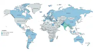 EE/CPA is available widely throughout the world, including in Europe, North America, South America, East Asia, South Asia, Southeast Asia, and Oceania.[25] It is notably not available in the United States or Japan.[25]