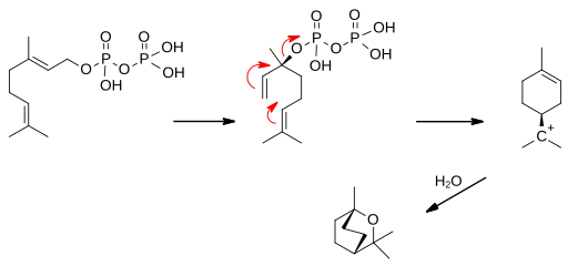 - ↑ Rinkel, Jan; Rabe, Patrick; zur Horst, Laura; Dickschat, Jeroen S (4 November 2016). "A Detailed View on 1,8-Cineol Biosynthesis by Streptomyces clavuligerus". Beilstein Journal of Organic Chemistry. 12: 2317–2324. doi:10.3762/bjoc.12.225. ISSN 1860-5397. PMC 5238540. PMID 28144299.