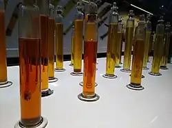 In the trade, eucalyptus oils are categorized into three broad types according to their composition and main end-use: medicinal, perfumery and industrial.[1] The most prevalent is the standard cineole-based "oil of eucalyptus", a colourless mobile liquid (which yellows with age), having a penetrating, camphoraceous, woody-sweet scent.[2]