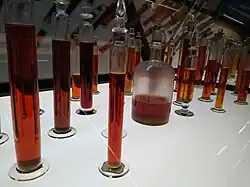 French chemist, F. S. Cloez, identified and ascribed the name eucalyptol — also known as cineole — to the dominant portion of E. globulus oil.[27] By the 1870s oil from Eucalyptus globulus, Tasmanian blue gum, was being exported worldwide and eventually dominated world trade, while other higher quality species were also being distilled to a lesser extent. Surgeons were using eucalyptus oil as an antiseptic during surgery by the 1880s.[28]