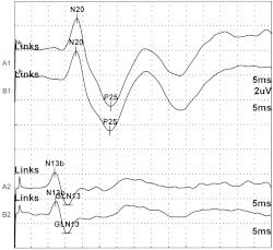 SEP findings do not by themselves lead to a specific diagnosis, and organic diseases cannot necessarily be excluded with normal SEP findings. Findings must be interpreted in the context of the patient’s clinical presentation. Evaluating the peripheral responses with SEPs could contribute to the diagnosis of peripheral nerve damage.