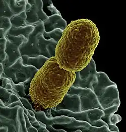 Bacteria evolve in a similar process to other organisms. This is through the process of natural selection, whereby beneficial adaptations are passed onto future generations until the trait becomes common within the entire population.[10] However, since bacteria reproduce via binary fission—a form of asexual reproduction—the daughter cell and parent cell are genetically identical. This makes bacteria susceptible to environmental pressures, an issue that is overcome by sharing genetic information via transduction, transformation, or conjugation. This allows for new genetic and physical adaptations to develop, allowing bacteria to adapt to their environment and evolve. Furthermore, bacteria can reproduce in as little as 20 minutes,[11] which allows for fast adaptation, meaning new strains of bacteria can evolve quickly. This has become an issue regarding antibiotic resistant bacteria.