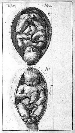 ![]() Child presenting head first (top) and feet first (bottom)[1] | |