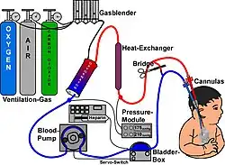 - ↑ Rodriguez-Cruz E, Walters III H, Aggarwal S, Schwartz DS (August 3, 2021). Windle ML, Mancini MC, Berger S (eds.). "Pediatric Extracorporeal Membrane Oxygenation". Medscape. WebMD LLC.