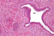 - ↑ Palatnik A, Narayan R, Walters M (November 2012). "Extramedullary hematopoiesis involving uterus, fallopian tubes, and ovaries, mimicking bilateral tuboovarian abscesses". International Journal of Gynecological Pathology. 31 (6): 584–7. doi:10.1097/PGP.0b013e31825183ad. PMID 23018220.